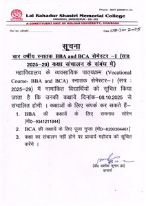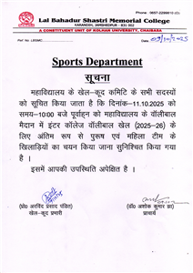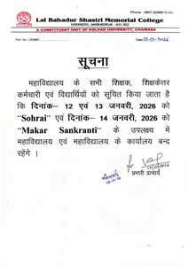 Established in the year 1971 by a group of motivated teachers and social workers committed to empowering the poor people, especially those belonging to the ST/SC and B.C. categories through education, Lal Bahadur Shastri Memorial College is at present a reputed constituent unit of Kolhan University, Chaibasa, located at Karandih, about two kilometers south of Tata Nagar Railway Junction, connected from all sides by roads. Situated in the lush-green terrain with rural simplicity, This college caters to the needs of higher education of over three thousand students coming from the adjoining areas as well as the far flung villages providing them with the opportunity of acquiring quality education for their progress, prosperity and self-reliance.